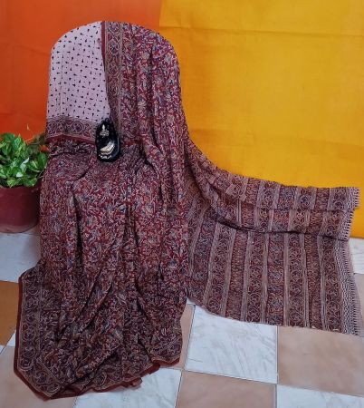 Red Kalamkari Vegetable Dry Hand Block Printing Cotton Saree - 0022