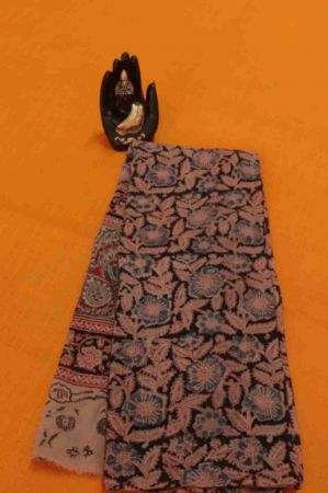 Black Kalamkari Dupatta with blue color flowers Design 001